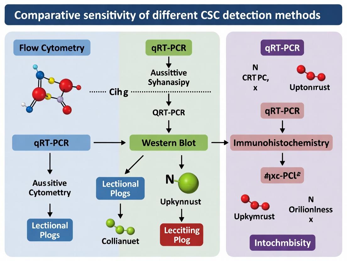 Selecting the optimal CSC detection method requires a nuanced understanding that balances sensitivity, specificity, and practical application. No single method is universally superior; flow cytometry offers robust quantification, functional assays confirm stemness, and emerging omics provide deep molecular insight. The highest sensitivity and validation are achieved through integrative, multi-modal strategies. Future directions must focus on standardizing assays across laboratories, developing novel markers for heterogeneous populations, and creating high-throughput platforms suitable for drug discovery. By critically applying this comparative framework, researchers can enhance the reliability of CSC studies, accelerating the development of therapies aimed at this pivotal treatment-resistant cell population.