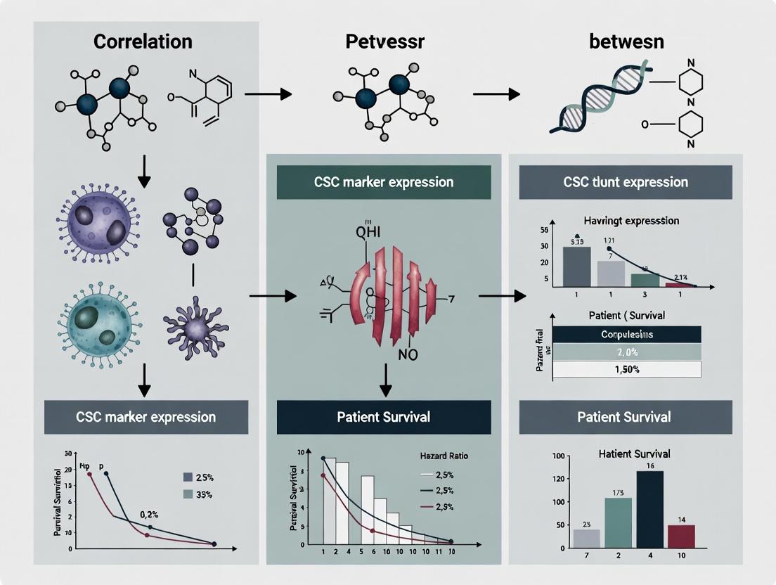 This comprehensive review analyzes the critical correlation between Cancer Stem Cell (CSC) marker expression and patient survival outcomes across various malignancies. Targeting researchers and drug development professionals, the article explores the foundational biology of key CSC markers (e.g., CD44, CD133, ALDH1), their established and emerging roles as prognostic indicators. It details methodologies for detecting and quantifying these markers in clinical samples, addresses common technical challenges and data interpretation pitfalls, and provides a comparative validation of markers across different cancer types. The synthesis offers a roadmap for translating CSC marker research into robust prognostic tools and novel therapeutic strategies, ultimately guiding future clinical and translational investigations.