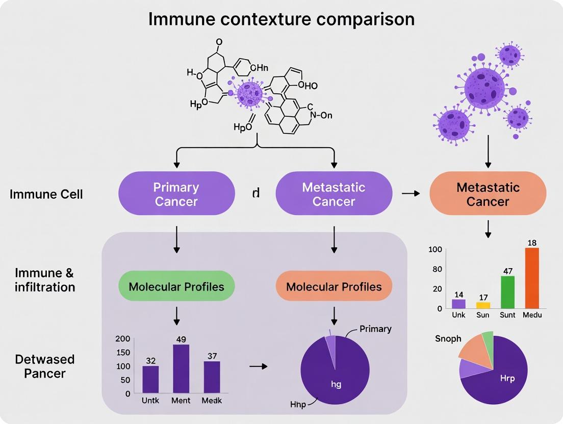 Current research indicates significant heterogeneity in immune contexture between primary tumors and their metastases. The following table synthesizes key comparative findings from recent studies focusing on cancers such as melanoma, colorectal carcinoma (CRC), and non-small cell lung cancer (NSCLC).