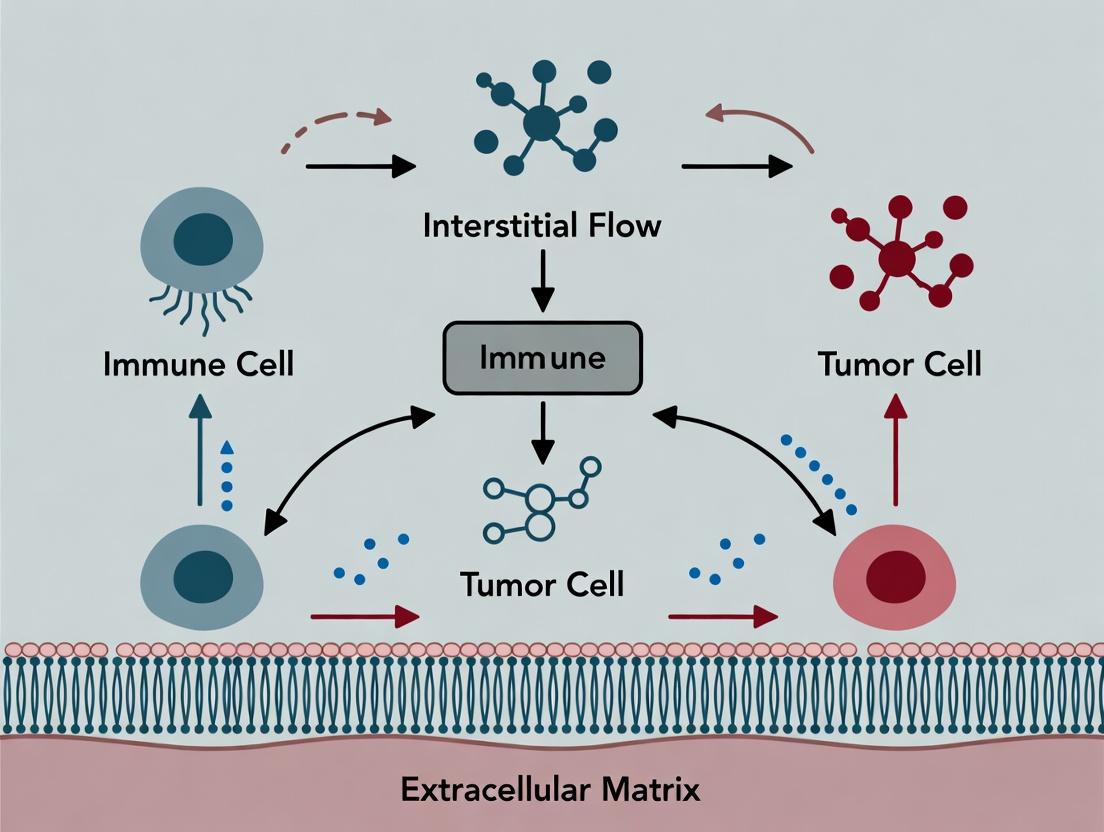 This review synthesizes current research on how interstitial fluid flow within the tumor microenvironment critically governs immune cell migration and function. Targeting researchers and drug developers, it explores foundational biophysical principles, advanced in vitro and in silico methodologies for modeling flow effects, common experimental challenges and optimization strategies, and comparative analyses of different flow regimes. The article aims to provide a comprehensive resource for understanding and leveraging this key biomechanical cue to enhance immunotherapeutic strategies.